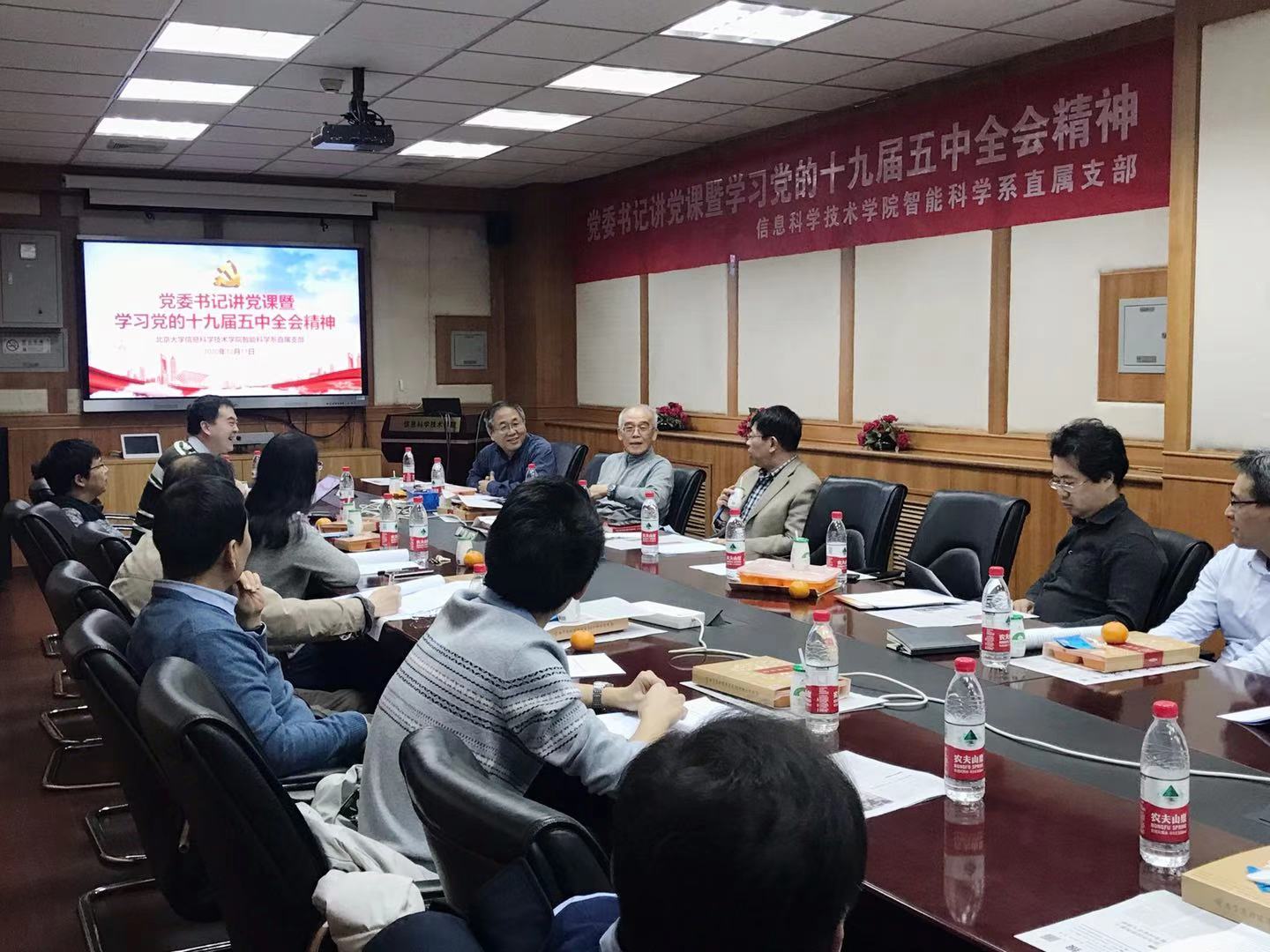 12月11日,信息科学技术学院党委智能科学系直属支部在理科二号楼2111召开支部大会,学习党的十九届五中全会精神。信息科学技术学院党委书记魏中鹏,学院副院长、智能科学系主任、智能科学系直属支部书记吴玺宏,支部党员参加本次会议,会议由智能科学系副系主任、智能科学系直属支部副书记罗定生主持。