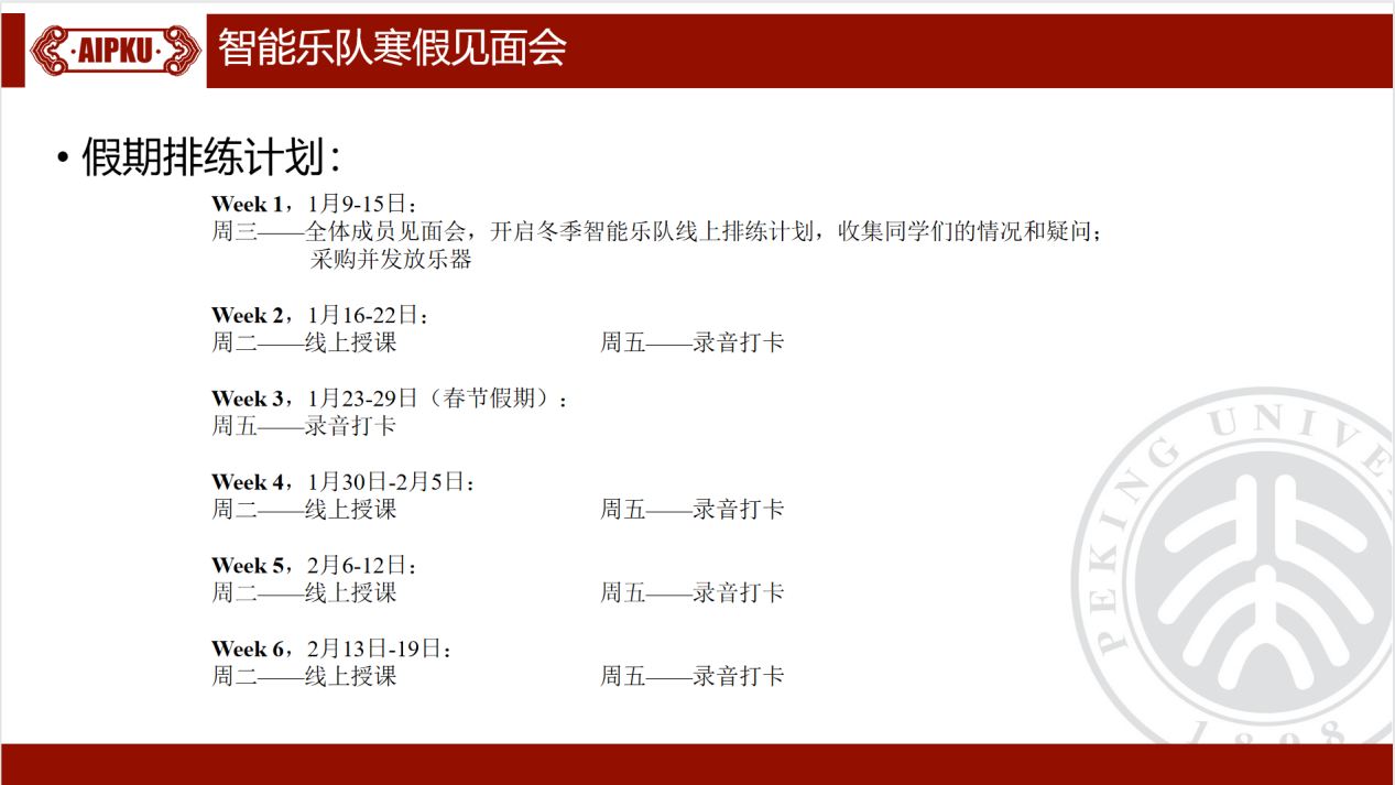 团研骨干组成的后勤保障组同学,共同召开了2023年第一次线上见面会,就乐队情况、训练计划、后勤保障等进行了沟通与安排。
