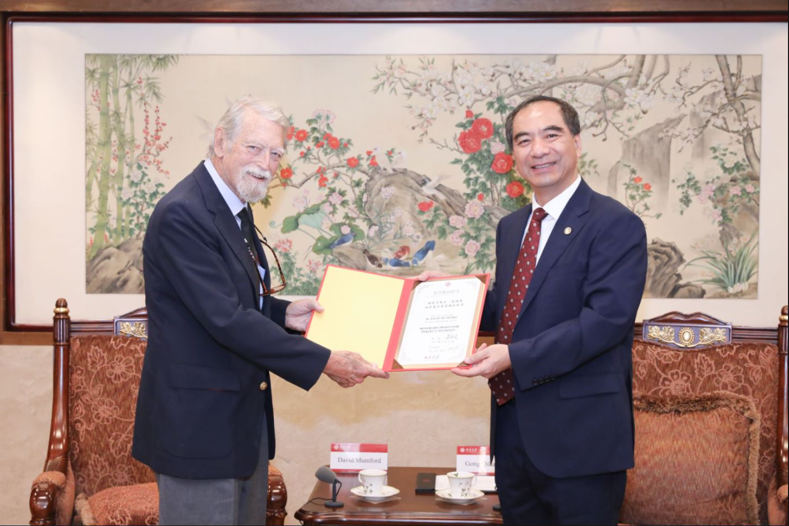 王博在宣读授予决定时指出,曼福德教授在数学和人工智能领域作出了举世瞩目的贡献,曾先后获得菲尔兹奖、麦克阿瑟奖、邵逸夫数学科学奖、沃尔夫数学奖、美国国家科学奖章等荣誉,是美国国家科学院院士、意大利国家科学院外籍院士、挪威国家科学院外籍院士、英国皇家科学院外籍院士。他长期关心中国的科技发展,为中国与世界高层次人才交流起到了重要作用。因此,动漫画