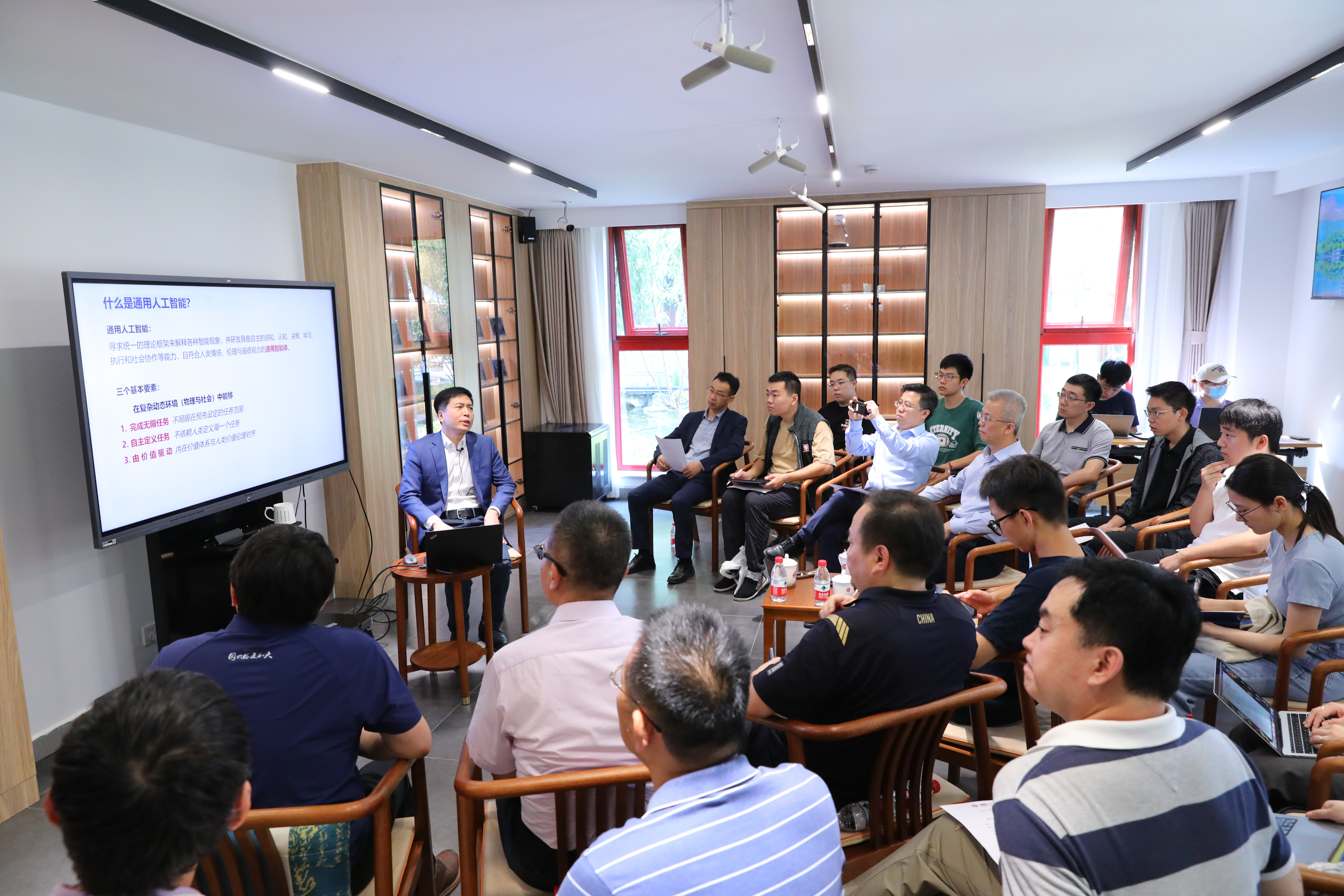 朱松纯提出,人文社科与人工智能间需要双向链接、深度融合, 实现大跨度的文理交叉。人工智能向人文社科提供新的数理模型和计算思维,以重构的方法解读儒释道经典,诠释并弘扬中国思想,增强“理论自信、道路自信、制度自信、文化自信”; 同时,人文社科为通用人工智能的研究提供哲学思考,“为机器立心”, 使得通用智能体符合人类的伦理与价值观。朱松纯简要演示了通用人工智能的最新进展,并从人类文明亿年历程的演化、 中国思想自千年根脉、为天地立心在百年变局三个历史跨度,阐释如何用通用人工智能的理论对中国传统哲学思想进行数理层面的解构。