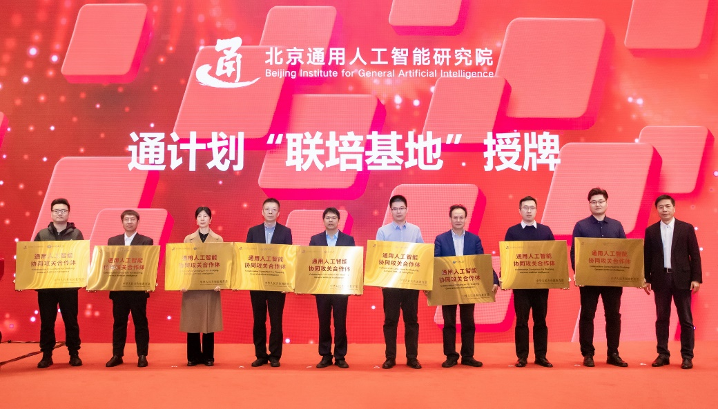 “通计划”是由教育部支持、通研院与全国9所高校联合培养博士生的专项计划,将加强院校合作与资源共享,着力培养服务国家需求的通用人工智能领域拔尖人才。启动会上,朱松纯为9所高校代表授予“联培基地”牌匾。