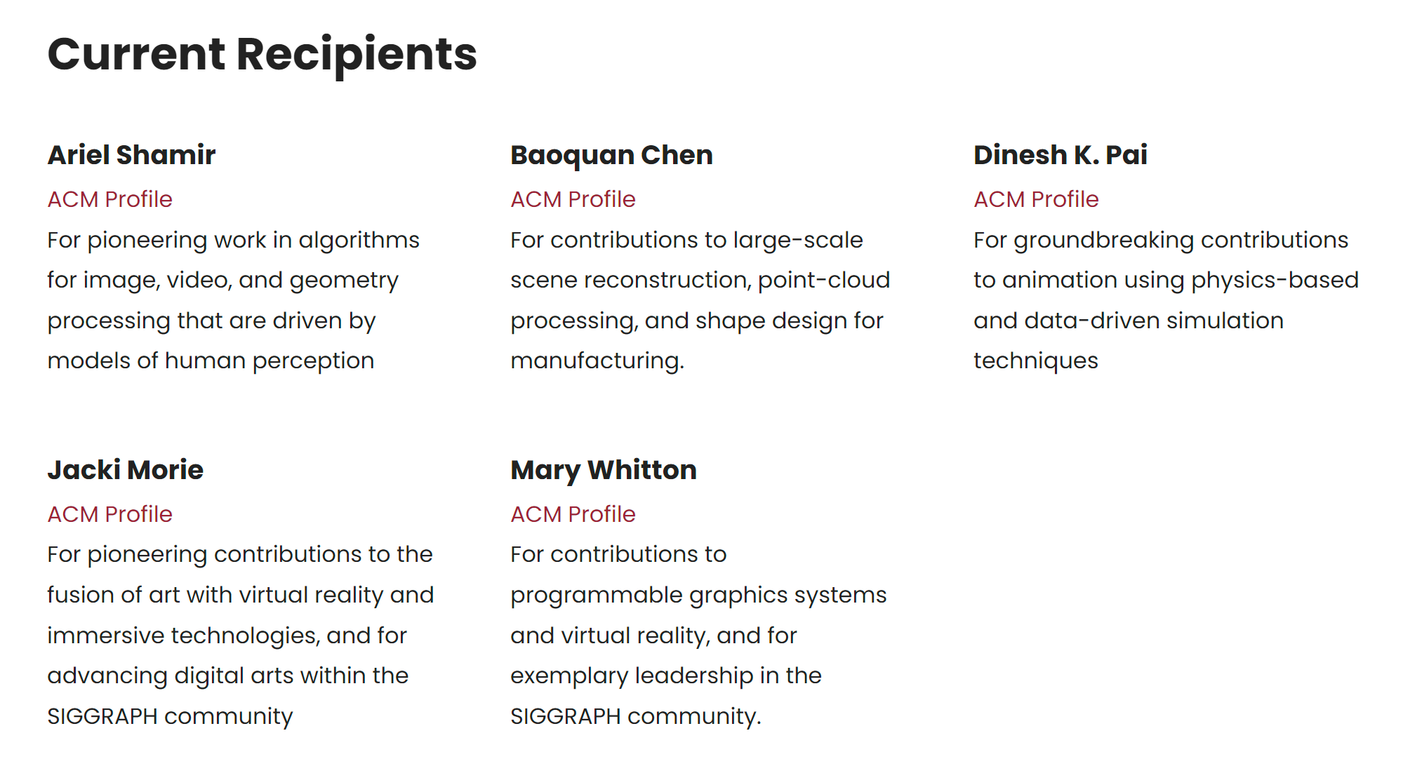 - 对计算机图形学和交互技术领域研究做出突出贡献