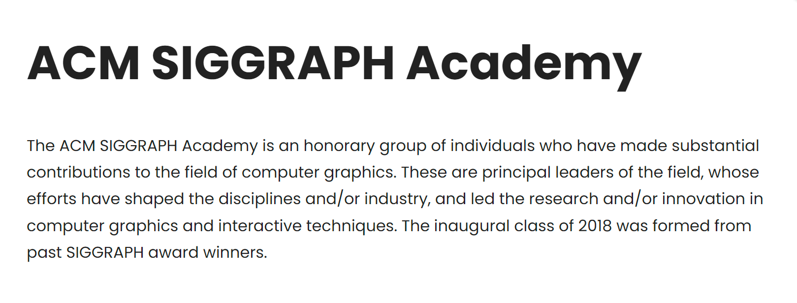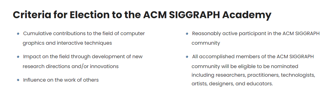 5月7日,该学院网站(//www.siggraph.org/awards/acm-siggraph-academy)正式发布消息,宣布今年入选成员。