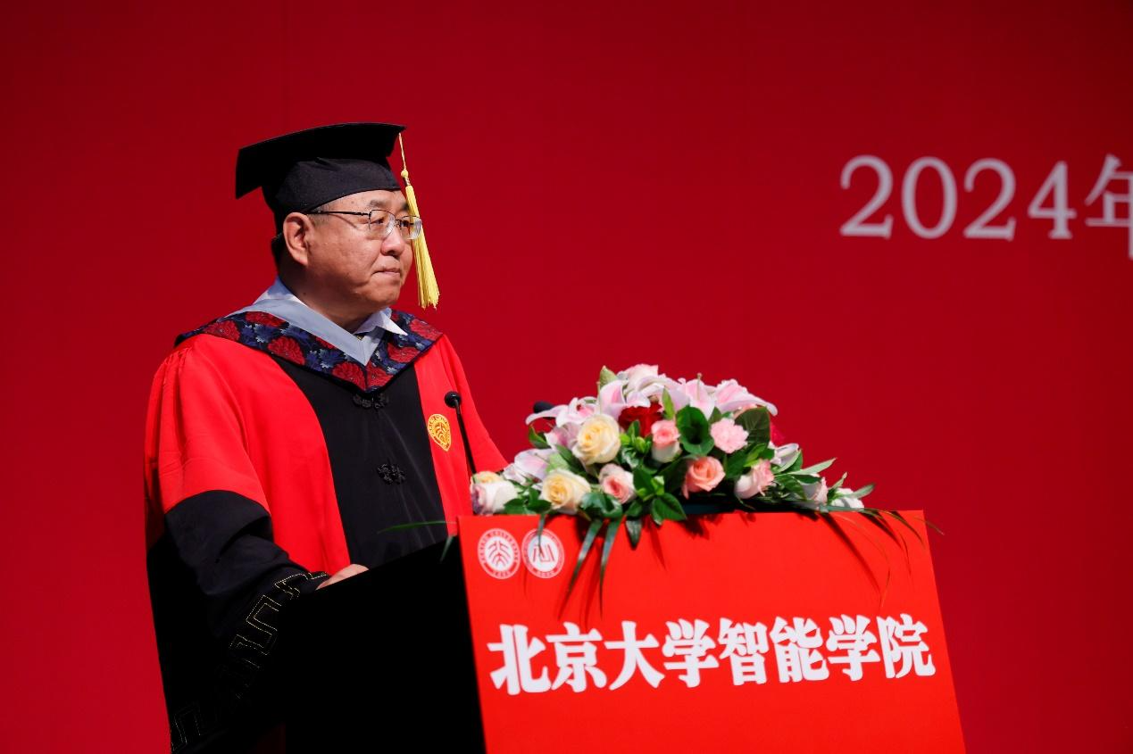 2024届毕业生参加典礼。同时受邀观礼的还有信息科学技术学院智能科学与技术专业的2024届本科生、元培学院通用人工智能实验班2024届本科生以及毕业生亲友。典礼由动漫画
