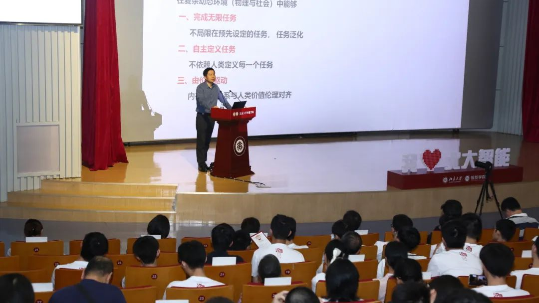 开学典礼结束后,朱松纯院长以“通用人工智能的中国技术路线思考”为主题,为全体2024级研究生新生和高年级学生代表讲授“动漫画