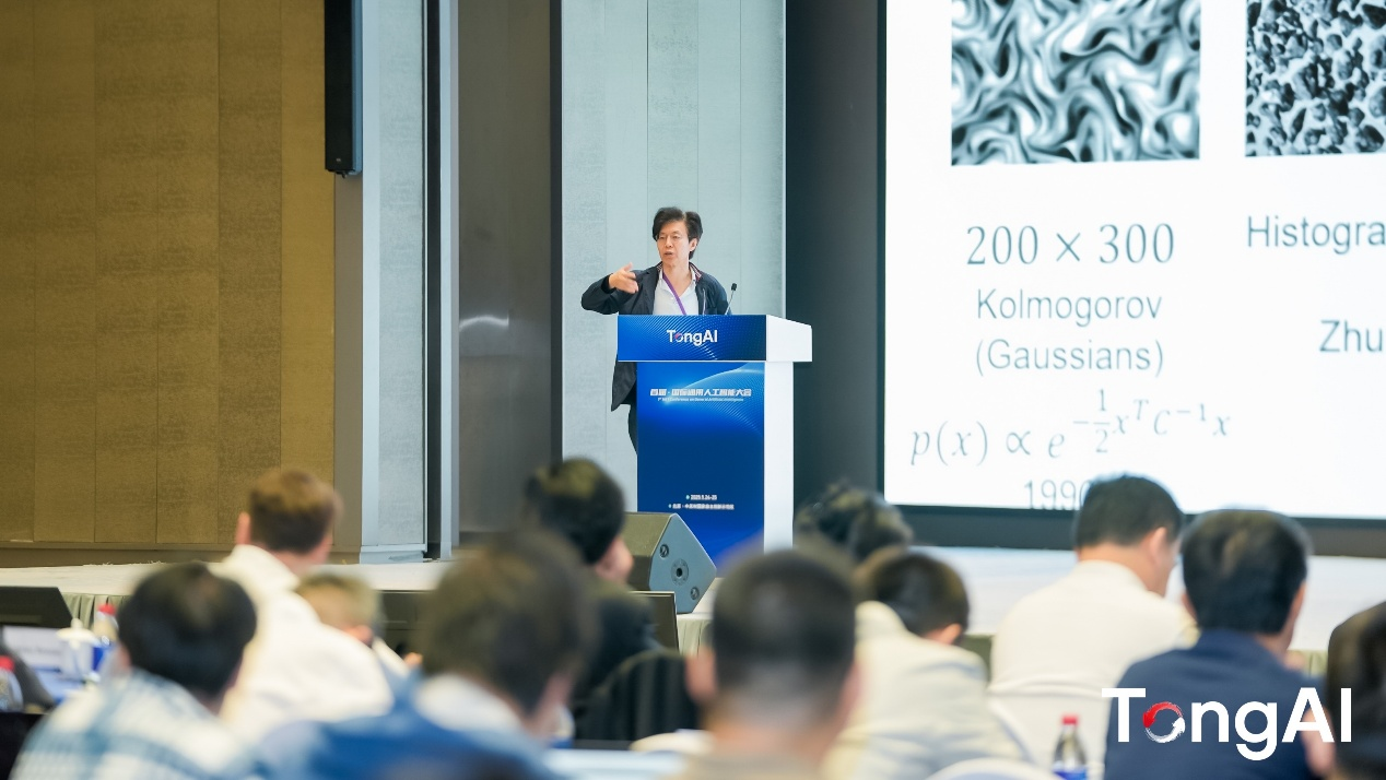 、人工智能研究院院长朱松纯教授出席本次大会并发表主题演讲。他介绍了东方哲学引领下通用人工智能(AGI)研究的最新进展,创新性地提出“基于哲学思想的CUV框架理论”:“C”代表用于思考或模拟大脑中的决策、推理与学习过程的认知架构,“U”代表通用智能体理解环境并与之交互能力的势能函数,“V”即为通用智能体提供动机的价值函数。