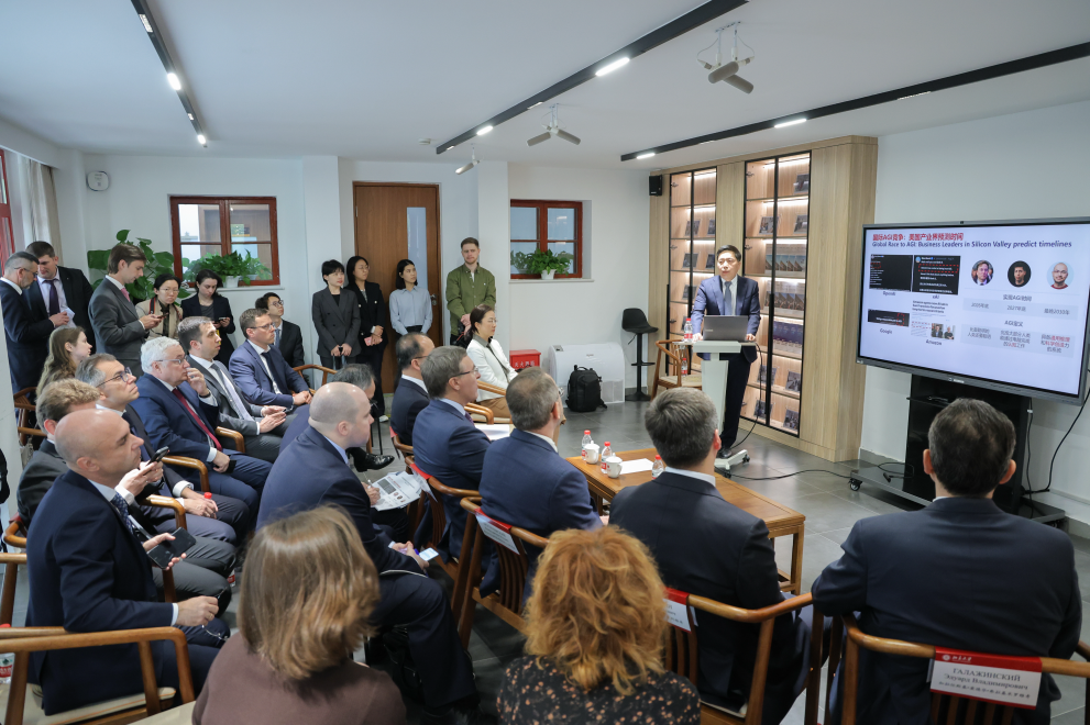 参观交流。朱松纯向代表团简要介绍了学院在人工智能及通用人工智能发展方面的前沿布局与最新研究成果。他围绕通用人工智能的理论框架、核心技术路径与全球发展趋势,分享了北大智能学科在有组织科研的格局下实现通用人工智能落地的探索实践,介绍了当前团队在通用智能体、通用人工智能安全治理、多模态认知推理等方向取得的最新进展,并就中俄在人工智能领域开展联合研究、人才培养等合作方向做出展望。报告结束后,双方围绕通用人工智能的人才培养、技术发展与应用前景展开了热烈交流,代表团成员对北大在通用人工智能领域的研究成果给予高度评价,期待未来能推动俄罗斯科研机构与动漫画
