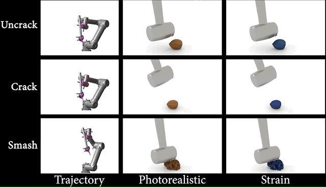 使用工具被认为是高等智能的一种体现。人并不是唯一会使用工具的物种,自然界中仍有其他的生物能够灵活地使用工具。比如,猩猩会用石头砸核桃,水獭会用石头敲蚌壳。虽然猩猩和水獭都选择用石头去砸开食物,但因为身体结构的不同,他们会采取不同的动作以适应自身的结构(Embodiment)。然而,如何使机器人理解工具的使用,并以适应其自身机构的方式使用工具尚且缺乏足够的研究。