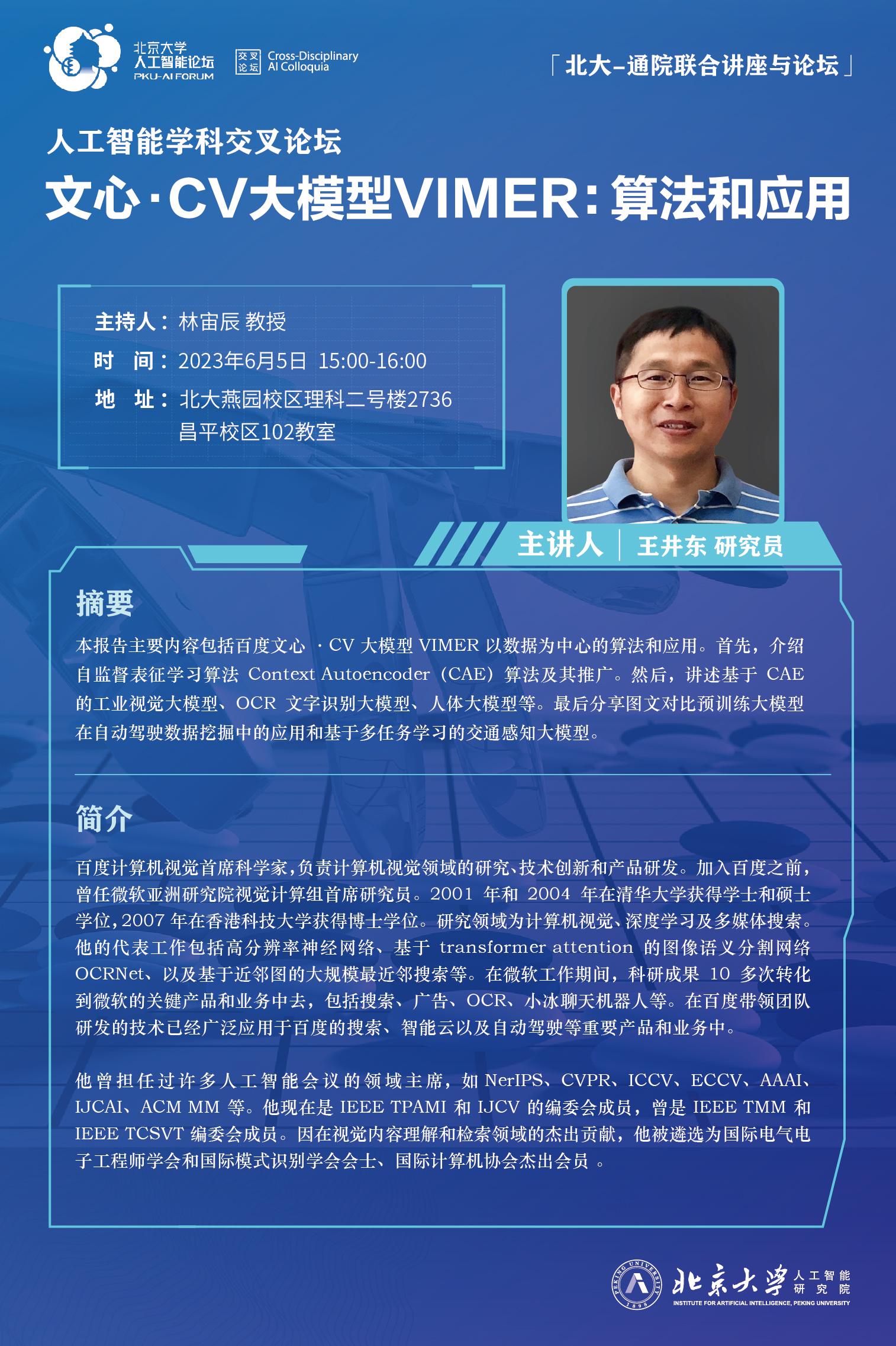 王井东,百度计算机视觉首席科学家,负责计算机视觉领域的研究、技术创新和产品研发。加入百度之前,曾任微软亚洲研究院视觉计算组首席研究员。2001年和2004年在清华大学获得学士和硕士学位,2007年在香港科技大学获得博士学位。研究领域为计算机视觉、深度学习及多媒体搜索。他的代表工作包括高分辨率神经网络、基于transformer attention的图像语义分割网络OCRNet、以及基于近邻图的大规模最近邻搜索等。在微软工作期间,科研成果10多次转化到微软的关键产品和业务中去,包括搜索、广告、OCR、小冰聊天机器人等。在百度带领团队研发的技术已经广泛应用于百度的搜索、智能云以及自动驾驶等重要产品和业务中。